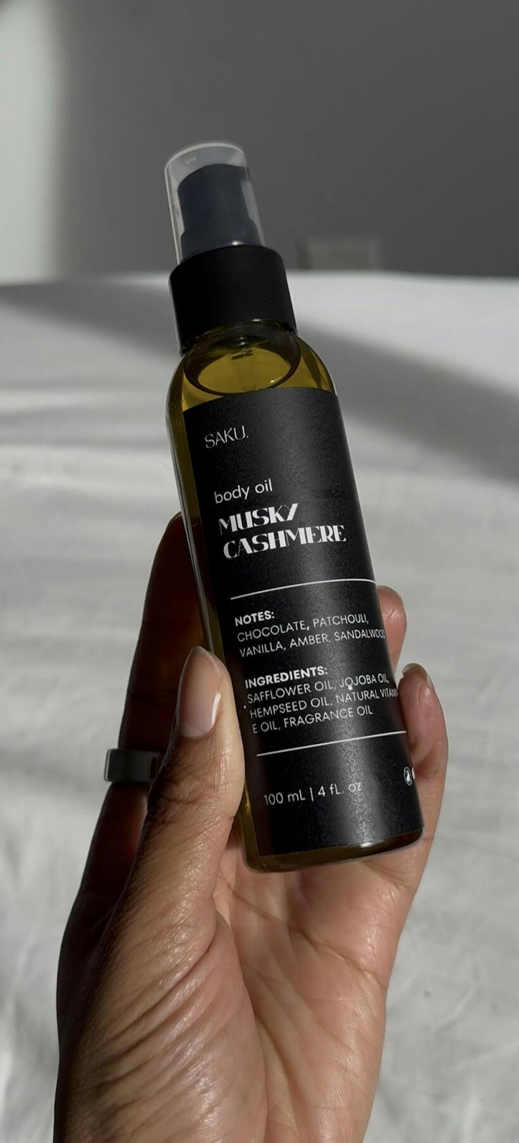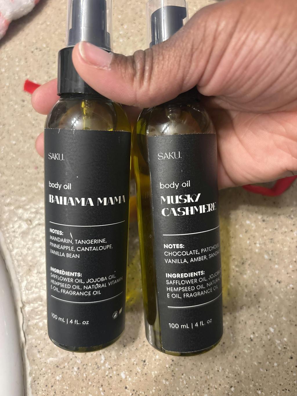 Body oils are amazing and feel so good and smooth on my skin! excellent products. thank you saku! I will definitely be ordering again!